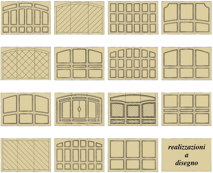 Di seguito alcuni esempi dei nostri modelli principali di porte basculanti in legno.